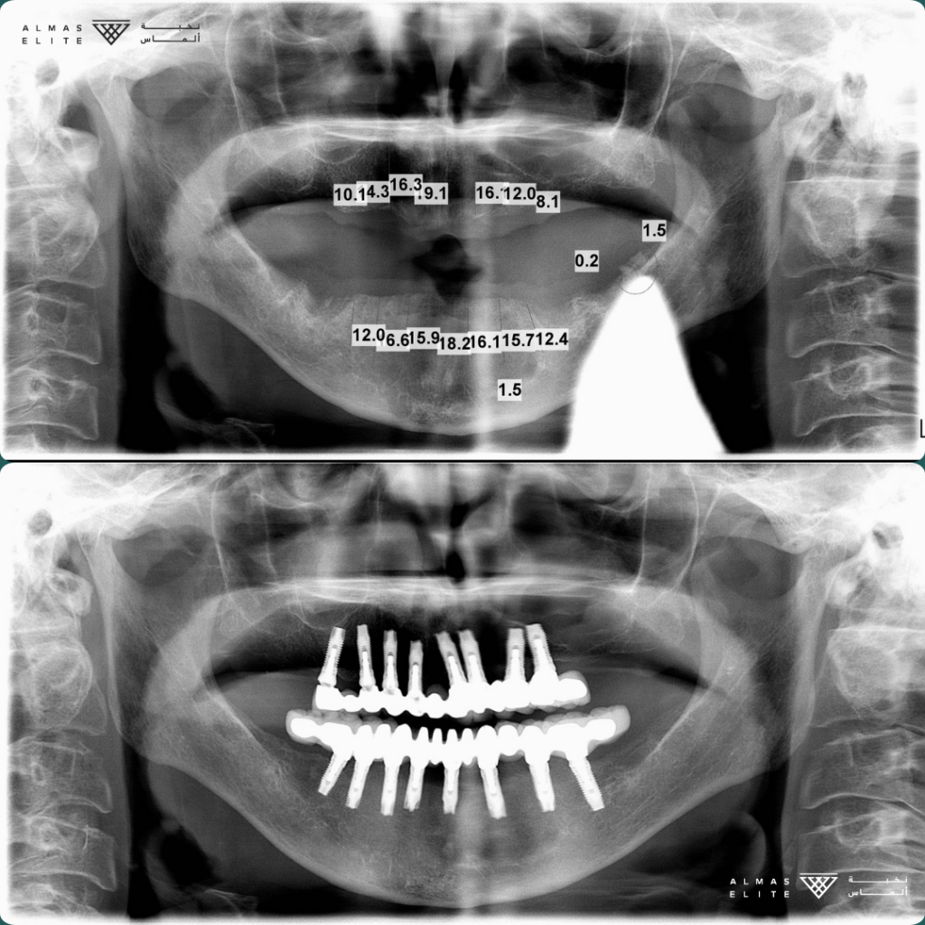 • الفحص الكامل: يشمل الأشعة ثلاثية الأبعاد وتحليل جودة وكثافة العظم.
