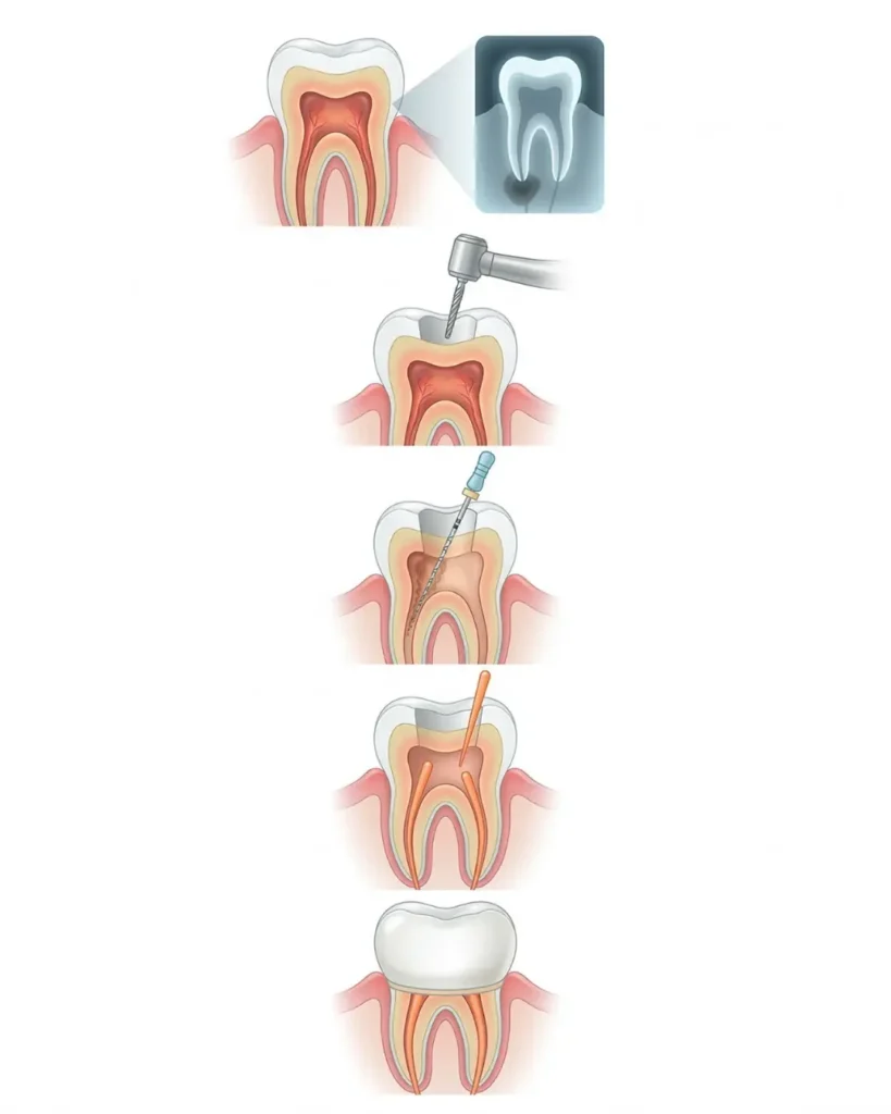 عندما يصاب اللب بالالتهاب أو العدوى، يصبح علاج الجذور ضروريًا للحفاظ على السن.